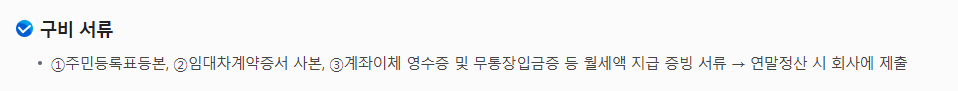 - 월세 지급 증빙자료(계좌이체 영수증 등).