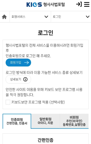 - 형사사법포털에서는 로그인 방식에 따라 접근 가능한 정보가 달라질 수 있어요.