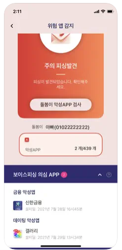 - 통화 중 금융사기 의심 패턴 감지 후 사용자 경고 알림