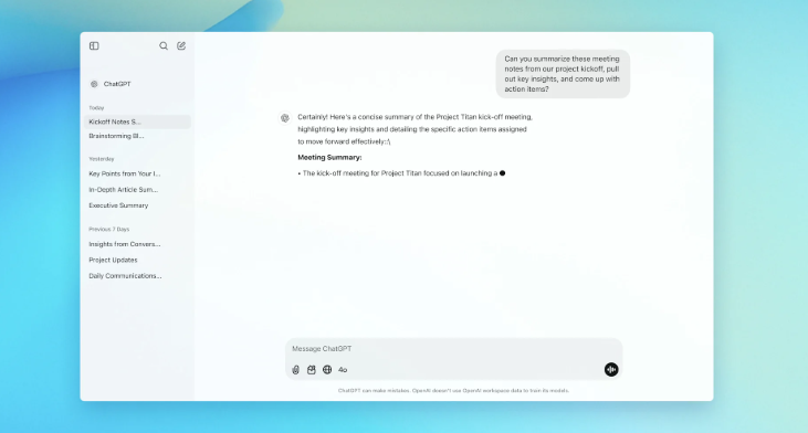 예: "이 PDF 문서 요약해 줘, 엑셀 데이터 기반 보고서 작성해 줘" - 타사 서비스 연동: Expedia, OpenTable, Wolfram Alpha 등과 연결
