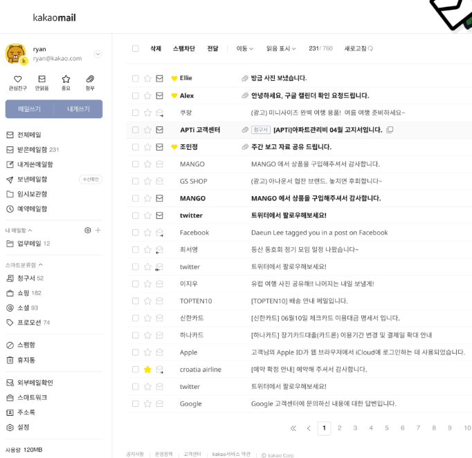 요즘처럼 여러 사이트에 가입할 일이 많은 시대에는 개인 메일과 업무용 메일을 구분하는 것이 필수인데, 카카오메일을 생활용 메일로 활용하면 알림도 덜 복잡하고 깔끔합니다.